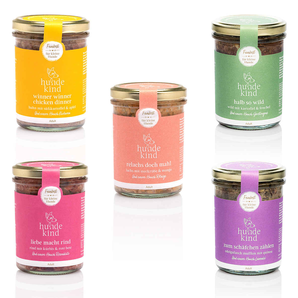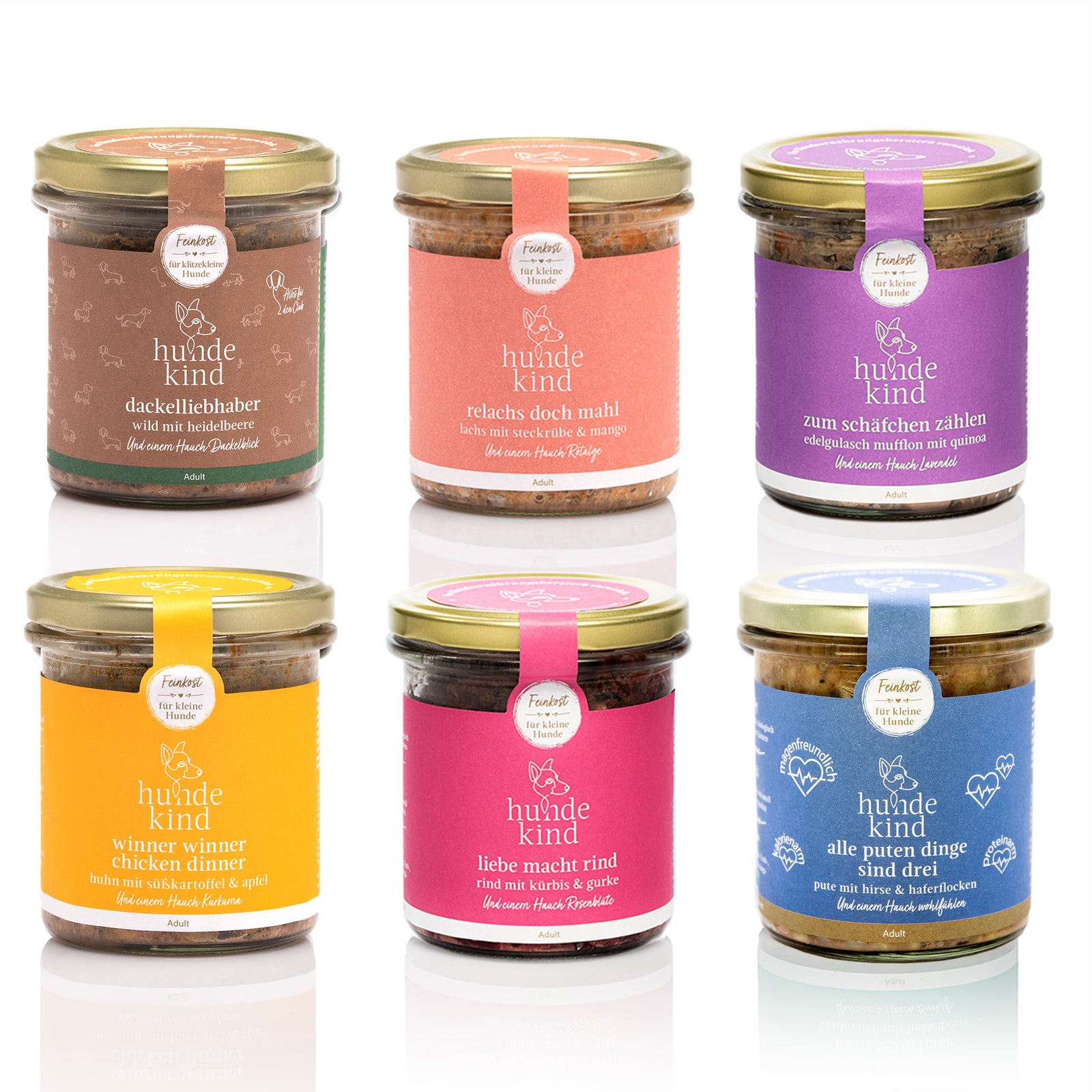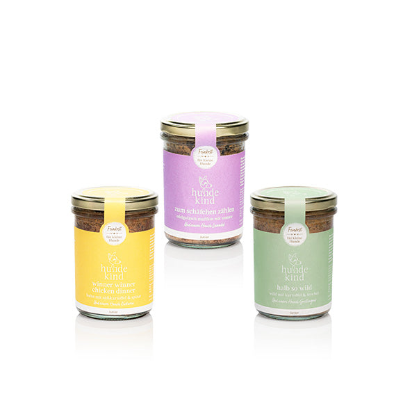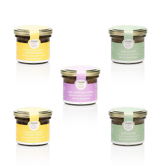 Alle unsere Feinkost-Menüs sind handgemacht, daher können sie ab und an in der Farbe oder Konsistenz variieren. Dies hat keinen Einfluss auf die hohe Qualität der Zutaten. Das Futter für kleine Hunde.